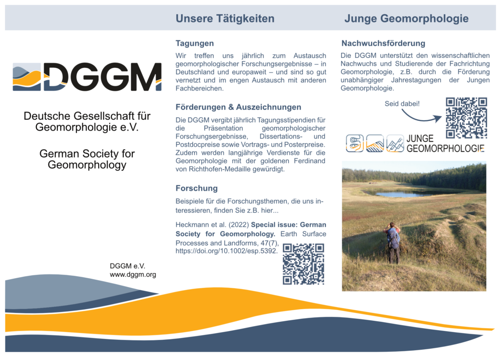 Die Deutsche Gesellschaft für Geomorphologie (DGGM) ist das Forum deutscher Geomorphologinnen und Geomorphologen und ist assoziiert mit der Deutschen Gesellschaft für Geographie (DGfG) und der Deutschen Geologischen Gesellschaft – Geologische Vereinigung e.V. (DGGV). Die DGGM ist nationales Mitglied in der International Association of Geomorphologists (IAG) und sorgt für eine Vernetzung der Disziplin auf nationaler und internationaler Ebene. Diese Homepage bietet eine Informationsplattform für die Aktivitäten der Gesellschaft sowie nationaler und internationaler Veranstaltungen.